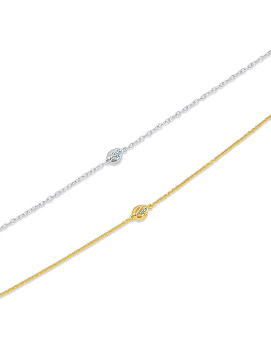 Lotus Bud Anklet Sterling Silver and Blue Topaz